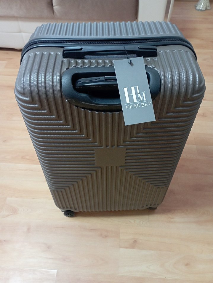 Hilmi Bey markalı gri erkek valiz, kilitli ve baskılı desene sahip modern tarzda. Ürün çok kaliteli etiketli hiç kullanılmadı. Ankara elden teslim.