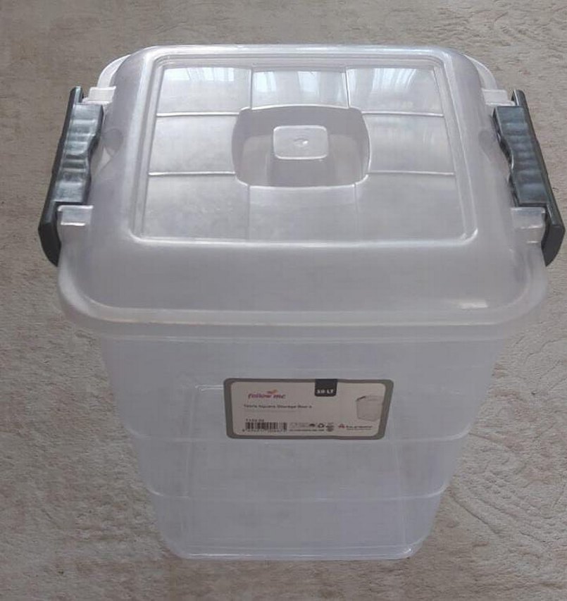 Gri renkte, kilitli kapağa sahip gıda saklama kabı, yiyeceklerin taze ve düzenli kalmasını sağlar. 10 Litre