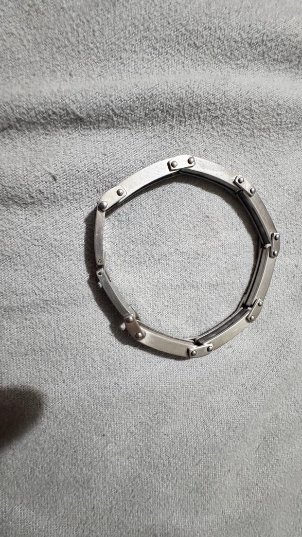 Gri renkte, kilitli tasarıma sahip minimalist ve çağdaş tarzda erkek bilekliği, günlük kullanım için uygundur.