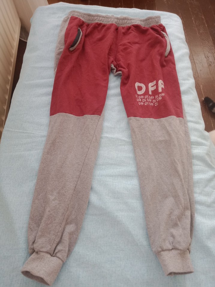 Gri ve kırmızı renk bloklu baskılı, bol kesim ve fermuarlı ceplere sahip erkek eşofman altı. Yumuşak ve sıcak kumaştan, günlük kullanım için uygundur. ♂️