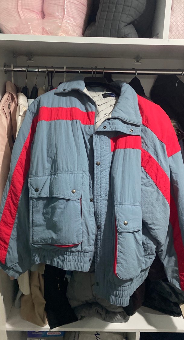 Gri ve kırmızı renklerde, düğmeli, cep detaylı, bol kesim ve uzun kollu street wear mont. Notlu yaka ve yumuşak, sıcak kumaştan üretilmiştir. Vintage bir üründür. Oversize bir ürün ben L giyiyorum normalde ancak oversize olarakta kullandığım oluyor.