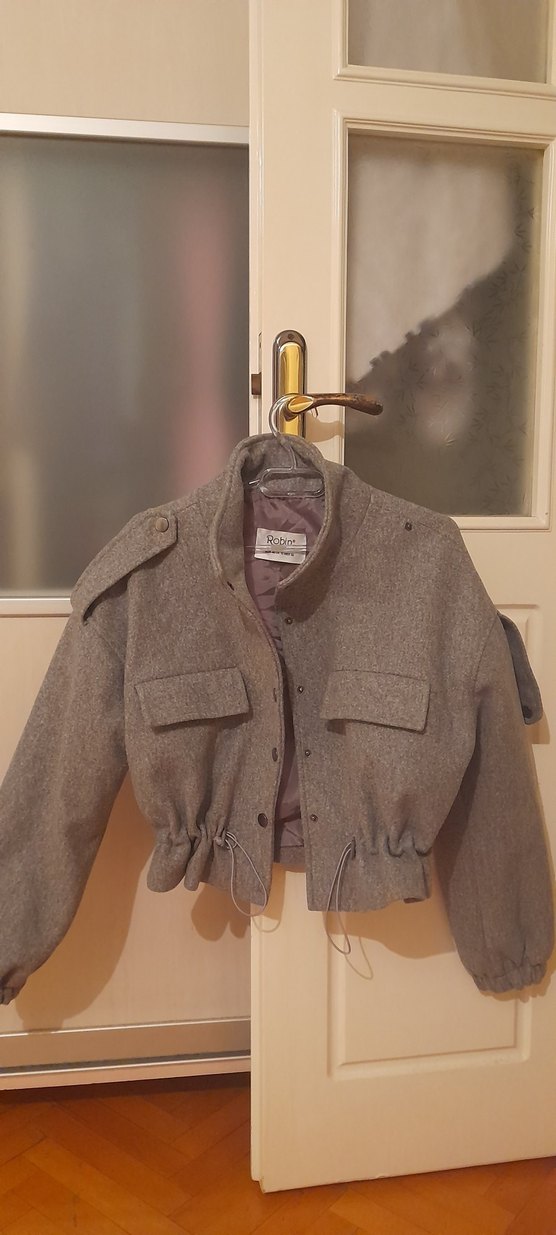 Gri Kısa Düğmeli tüvit Kadın Ceket
