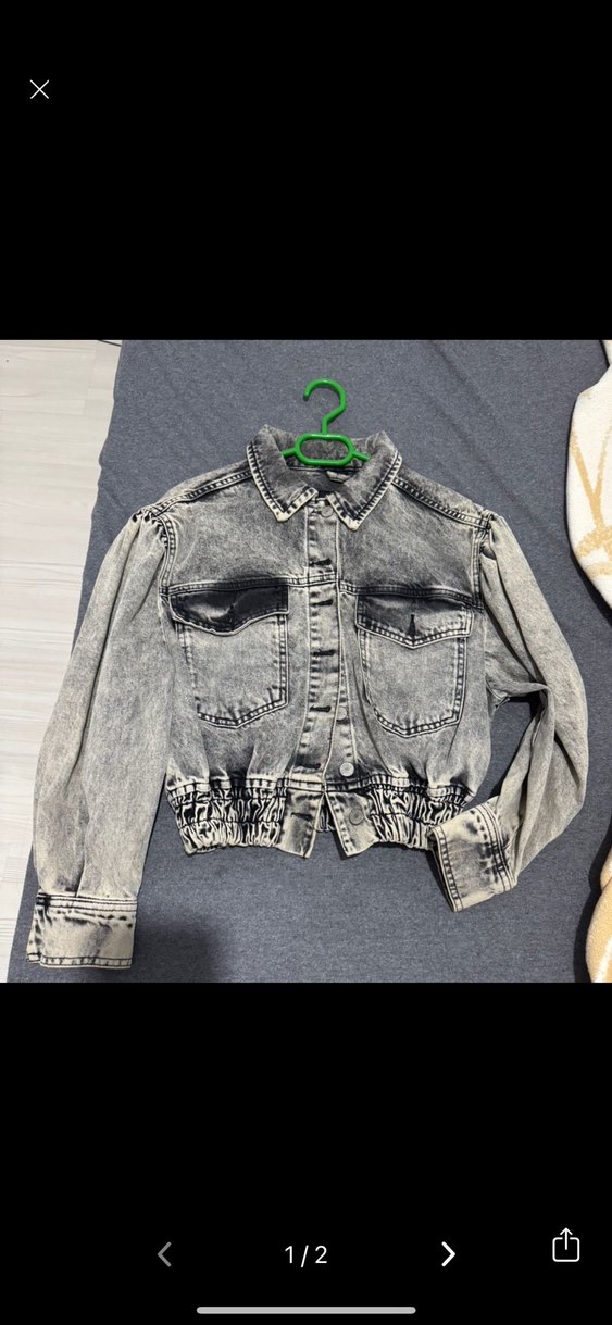 Gri Kısa Kadın Denim Ceket
