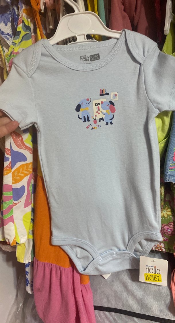Açık mavi renkli, kısa kollu ve bisiklet yaka olan bu bebek body, baskılı desenle süslenmiştir. Yumuşak pamuk kumaştan üretilmiş, rahat ve şık bir sokak stili sunar.