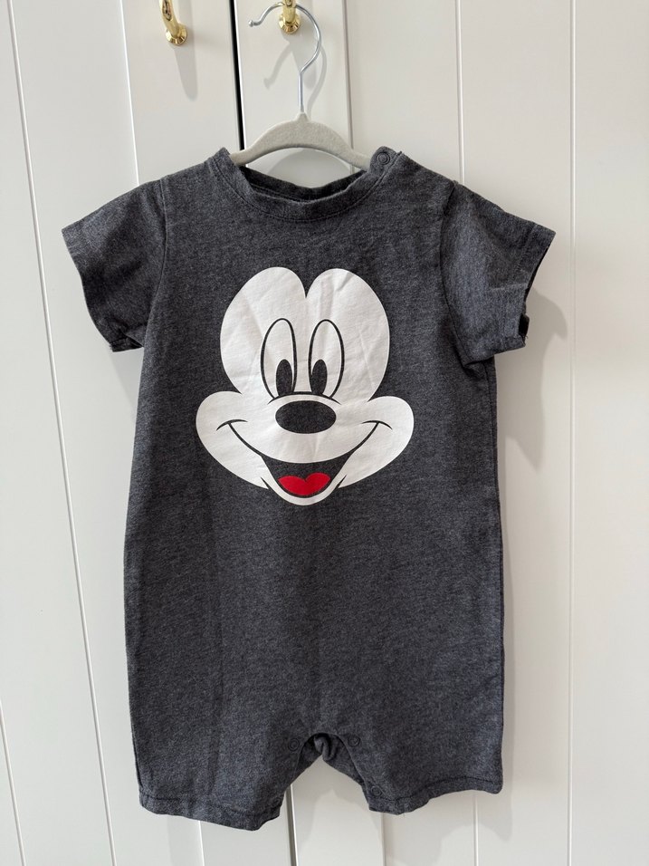 Gri Kısa Kollu Bebek Tulum Mickey Baskılı