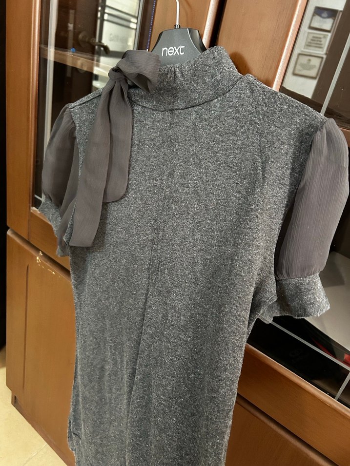 Boğazlı, kısa kollu ve midi boy gri triko bluz , rahat sentetik kumaştan örülüdür. Sokak stiline uygun sade tasarıma sahiptir.
