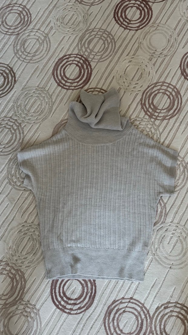 Gri Kısa Kollu Boğazlı Triko Kazak