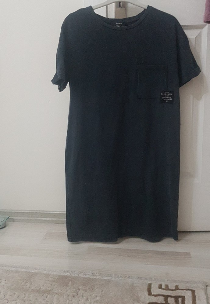 Kısa kollu, bisiklet yaka ve cep detaylı gri denim midi elbise, rahat kesimiyle günlük sokak stili için uygun. Effortless chic görünüm sunar.