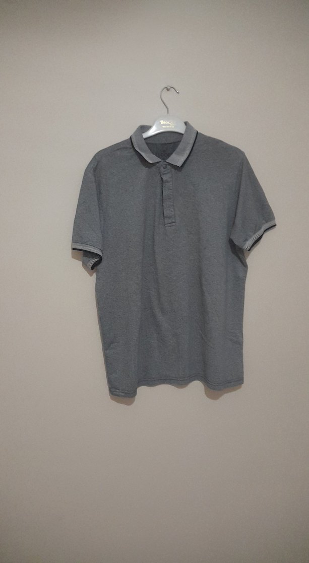 Gri renkte, kısa kollu ve polo yakalı erkek tişörtü. Düz ve sentetik kumaştan, rahat kesimle günlük ve sokak stiline uygun.
