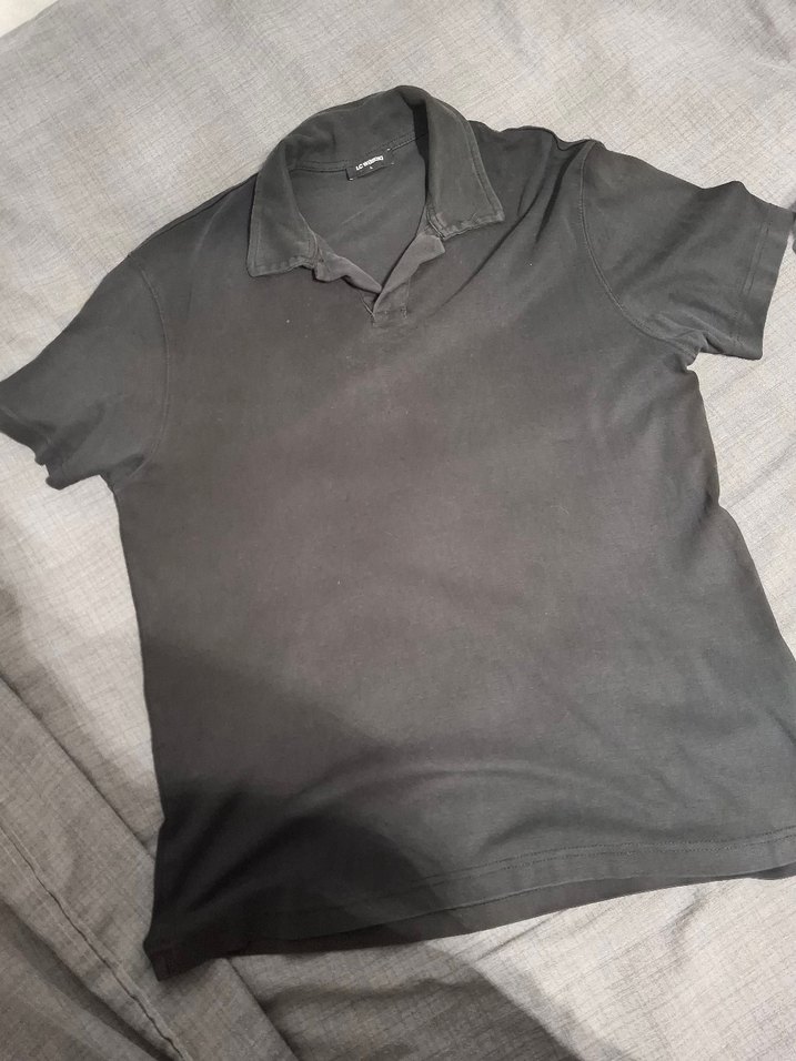siyah renkte, kısa kollu ve yakalı, ince kumaştan yapılmış, günlük kullanıma uygun rahat ve şık erkek polo tişört.