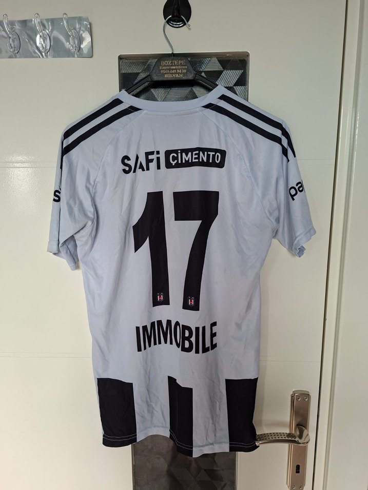 Gri renkli, kısa kollu, bisiklet yaka ve baskılı detaylara sahip erkek spor formasıdır. Velcro özelliği bulunur, 17 numara ve IMMOBILE yazısı vardır. ♂️