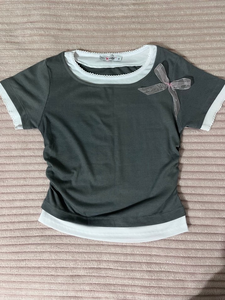 Hic giyilmedi. Kısa kollu, fitted, beyaz detaylı ve fiyonk süslemeli, ince ve şık kesimle tasarlanmıştır.