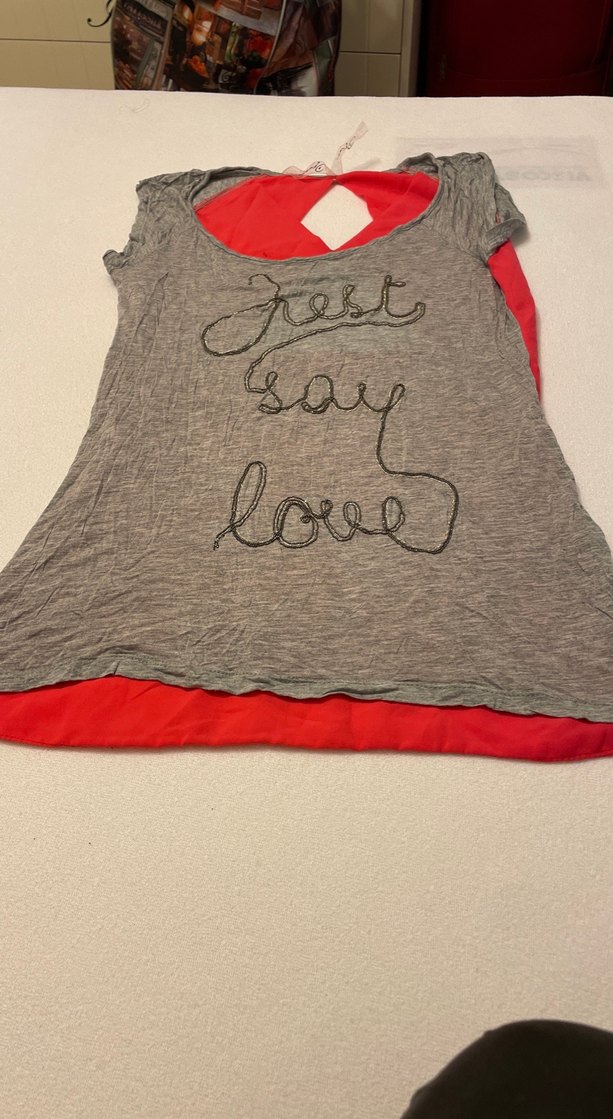 Gri renkli, kısa kollu, straplez yakalı, keten kumaştan yapılmış bol kesim hamile bluzu. Dantel detaylı ve baskılı, günlük sokak tarzı için uygun.