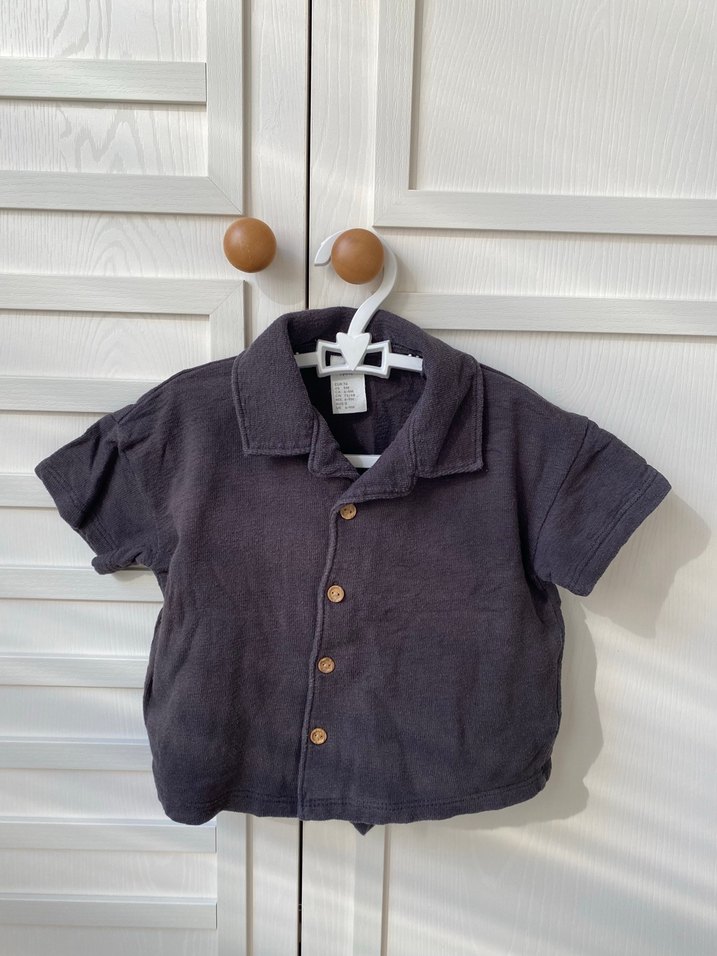 Gri jarse ikili takım erkek çocuk gömlek, yakalı, düğmeli ve kısa kolludur. Bol kesimiyle rahat bir kullanım sağlar.