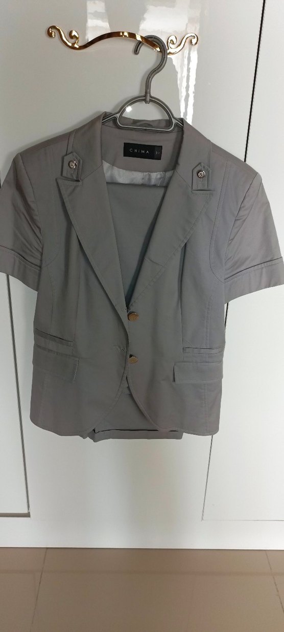 Gri Kısa Kollu Kadın Blazer Ceket-pantolon takım