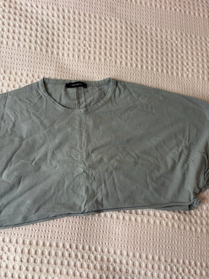 Gri Kısa Kollu Kadın Crop Top