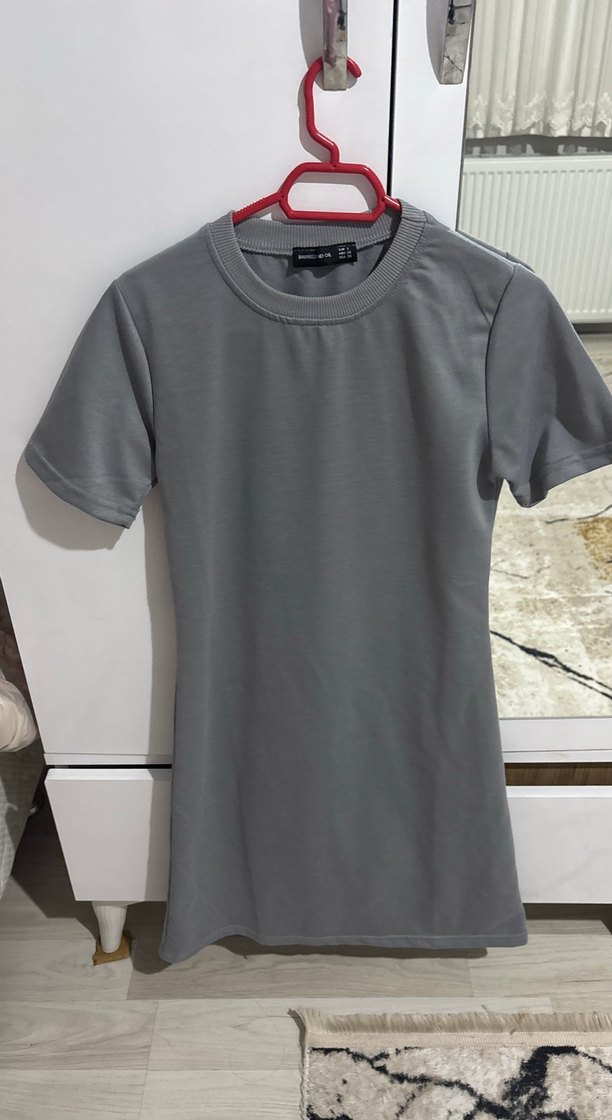 Gri renkte, kısa kollu ve yuvarlak yakalı, vücuda oturan kadın elbise. Düz ve sade tasarımıyla günlük ve sokak stiline uygun. Aldığım ama hiç giymediğim bir ürün.