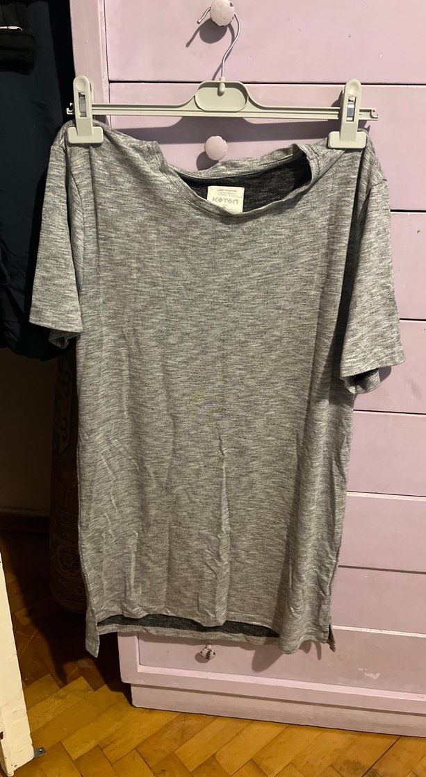 Gri Kısa Kollu Kadın Keten Tişört