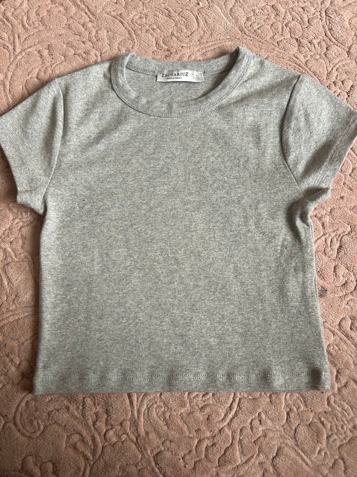 Gri Kısa Kollu Kadın Tişört crop