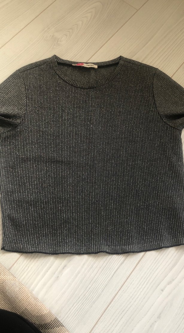 Gri renkli, kısa kollu, yuvarlak yakalı, vücuda oturan kadın triko kazak. Günlük kullanıma uygun düz ve rahat bir modeldir.