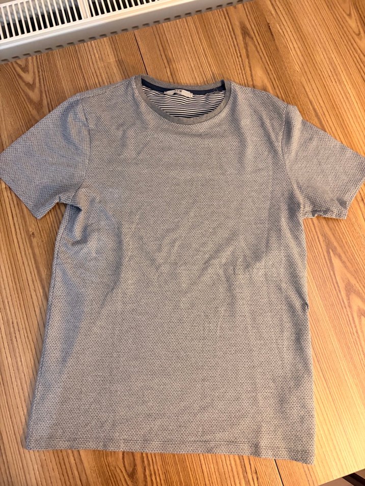 Gri renkte, keten kumaştan yapılmış, kısa kollu ve yuvarlak yakalı erkek tişörtü. Düz ve desen içermeyen modeliyle günlük ve sokak stiline uygundur.