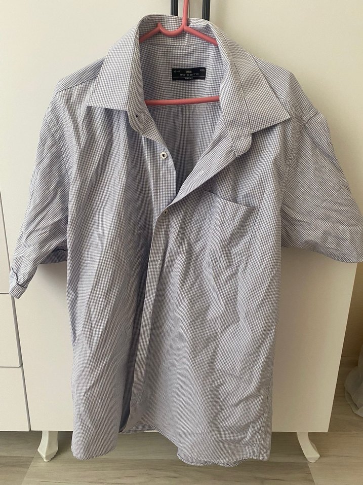 Gri renkli, keten kumaştan, kısa kollu, düğmeli ve yakalı salaş kesim gömlek. Sokak stili için uygun, cep detayı bulunur.