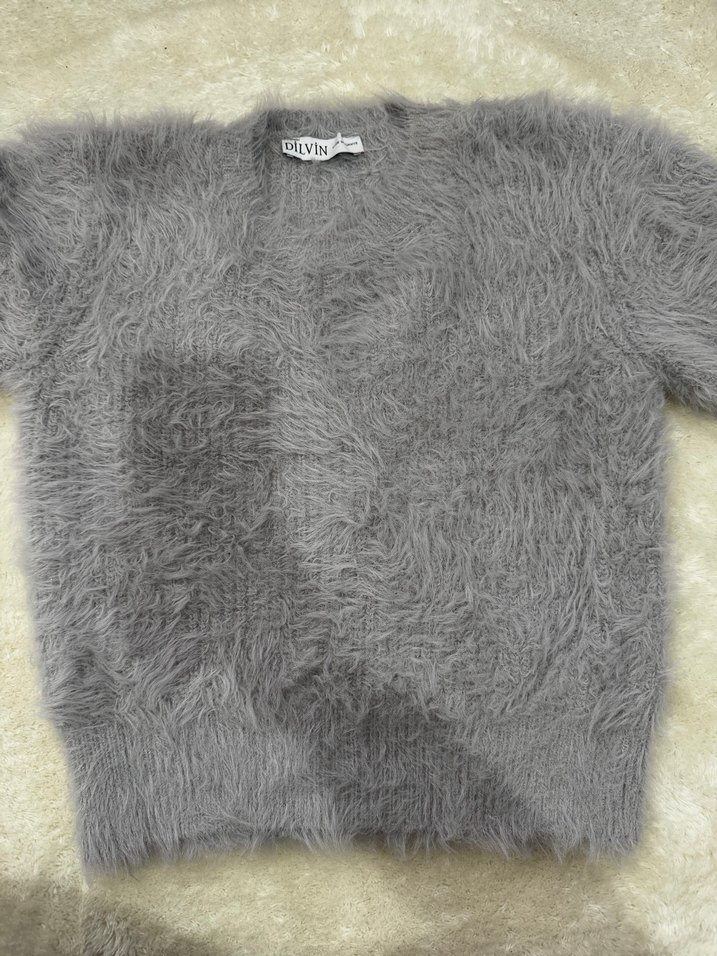 Gri Kısa Kollu Kürklü Kadın Kazak