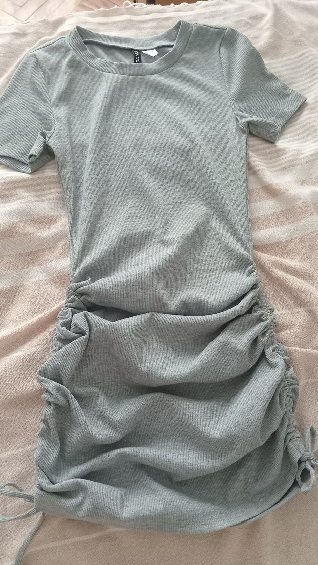 Gri renkli, kısa kollu, kruvaze yakalı ve drapeli yapıya sahip midi elbise. Rahat ve şık, günlük kullanıma uygun.