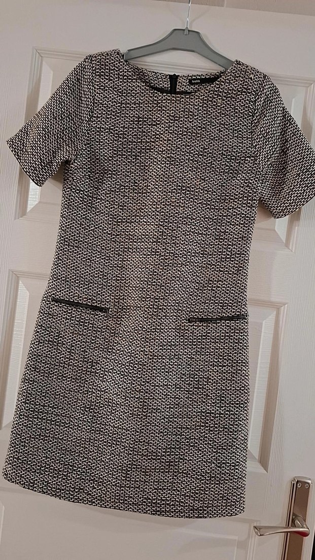 Gri midi elbise, kısa kollu ve yuvarlak yakalıdır. Örme sentetik kumaştan, regular fit kesimle yapılmıştır. İş ortamı için uygun, desen içermeyen şık bir tasarıma sahiptir.