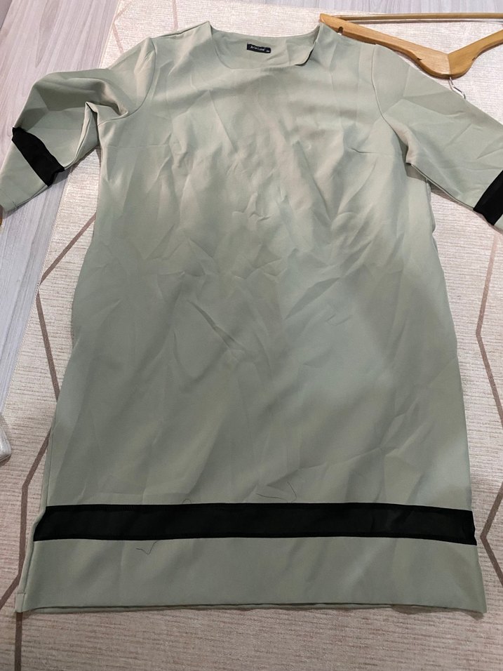 Drapeli, kısa kollu, gri midi tunik. Düz yakalı, siyah şerit detaylı, günlük kullanıma uygun rahat kesim.