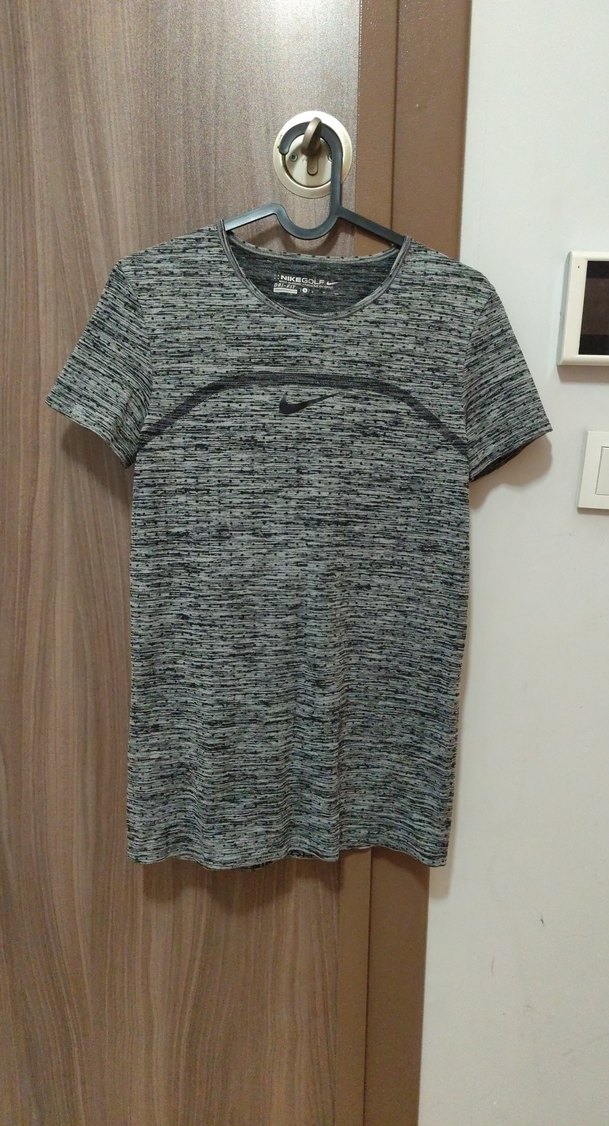Gri renk, kısa kollu, yuvarlak yaka ve örme dokulu kadın tişörtü. Sentetik kumaştan, normal midi boyda ve spor sokak stiline uygun. ♀️