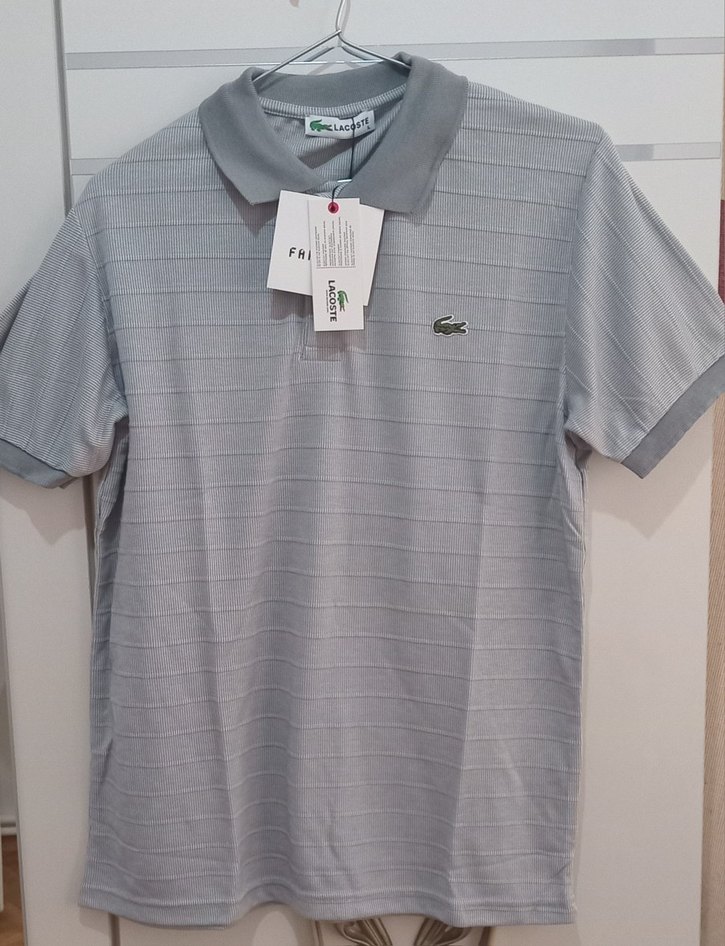 Gri renkte kısa kollu, düğmeli yakalı ve baskılı desenli polo tişört. pomuklu kumaştan üretilmiş, rahat kesimli ve günlük sokak stiline uygun.