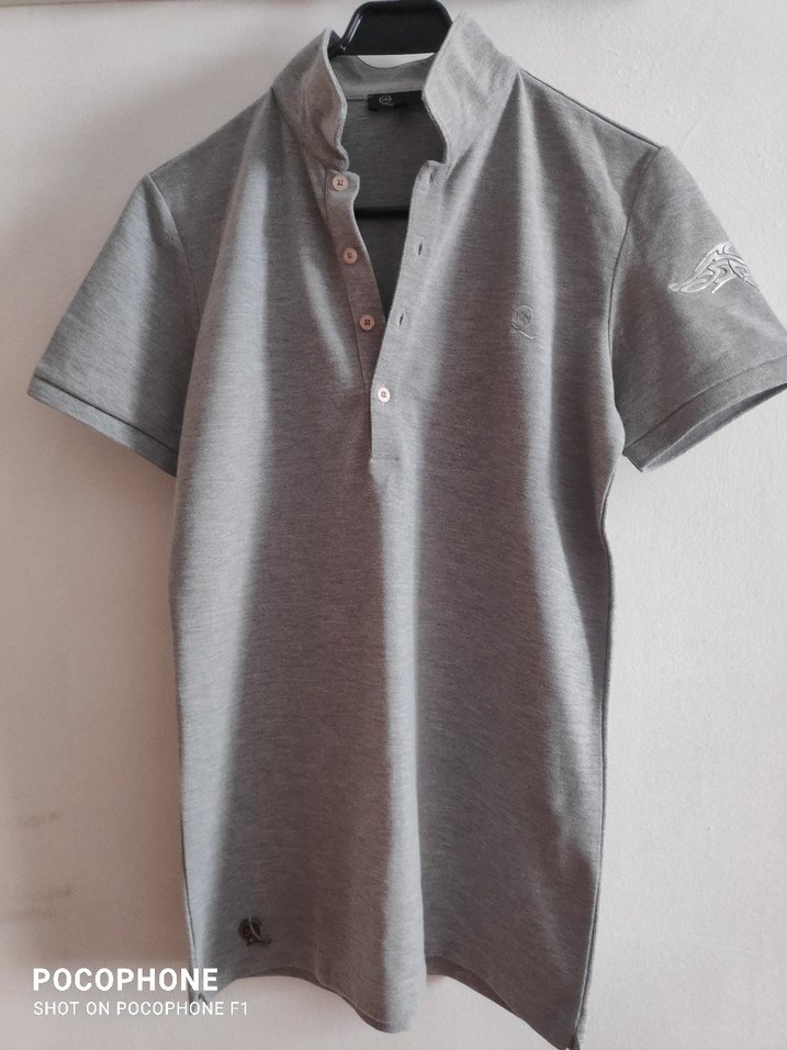 Gri kısa kollu polo yaka tişört, düğmeli ön kısmı ve regular fit kesimiyle rahat bir kullanım sunar. Yumuşak sentetik kumaştandır.