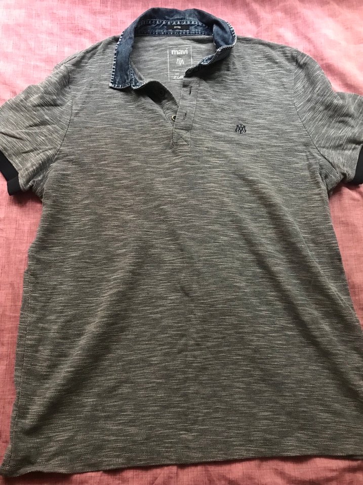 Gri Kısa Kollu Polo Yaka Tişört Mavi
