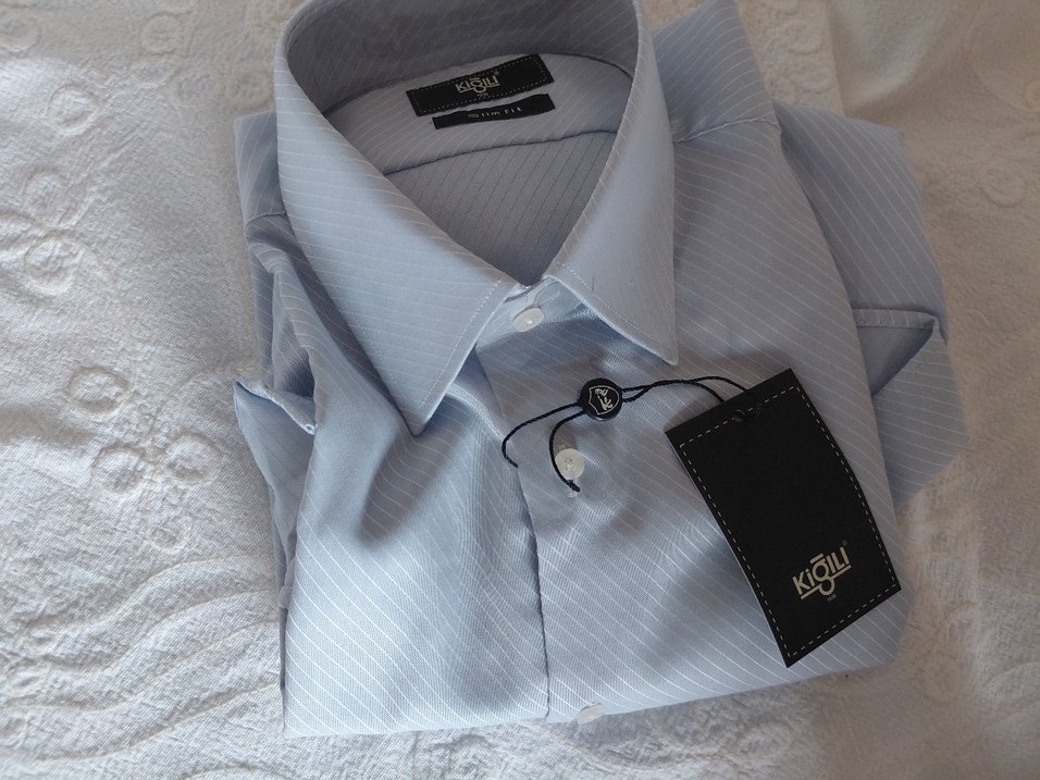 Gri renkte, kısa kollu, yakalı ve düğmeli ön kısmı olan sentetik kumaştan yapılmış gömlek. Ofis ve günlük sokak tarzı için uygundur.