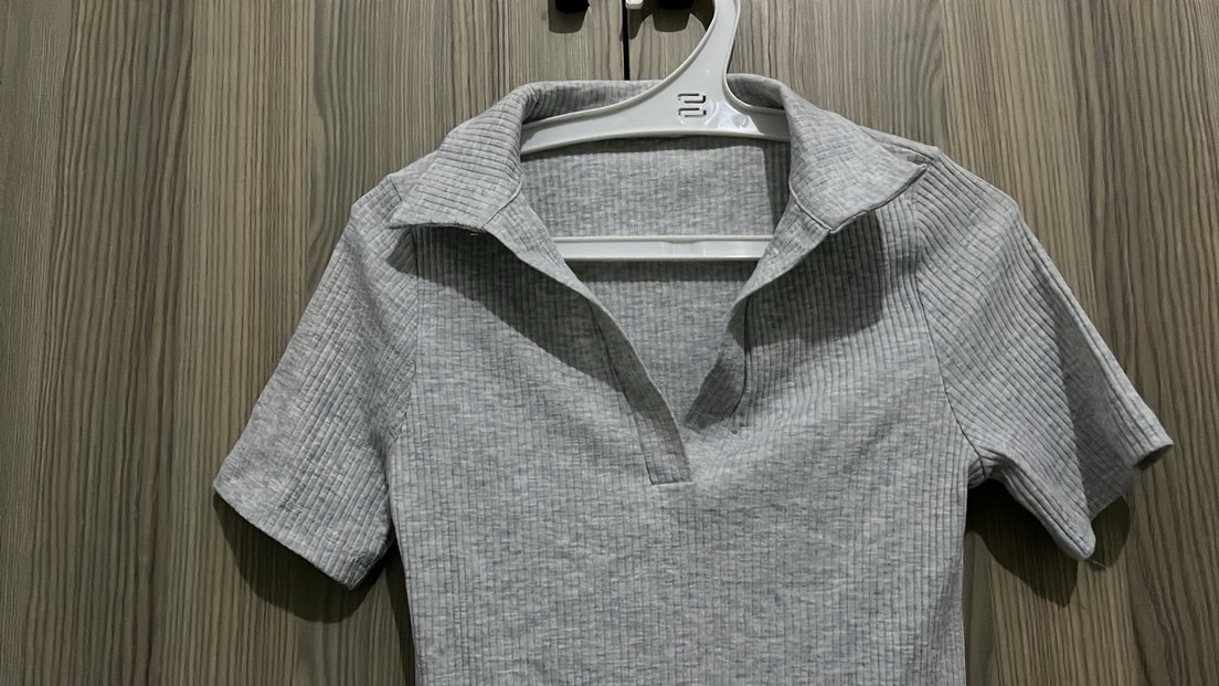 Gri Kısa Kollu Yakalı Kadın Gömlek