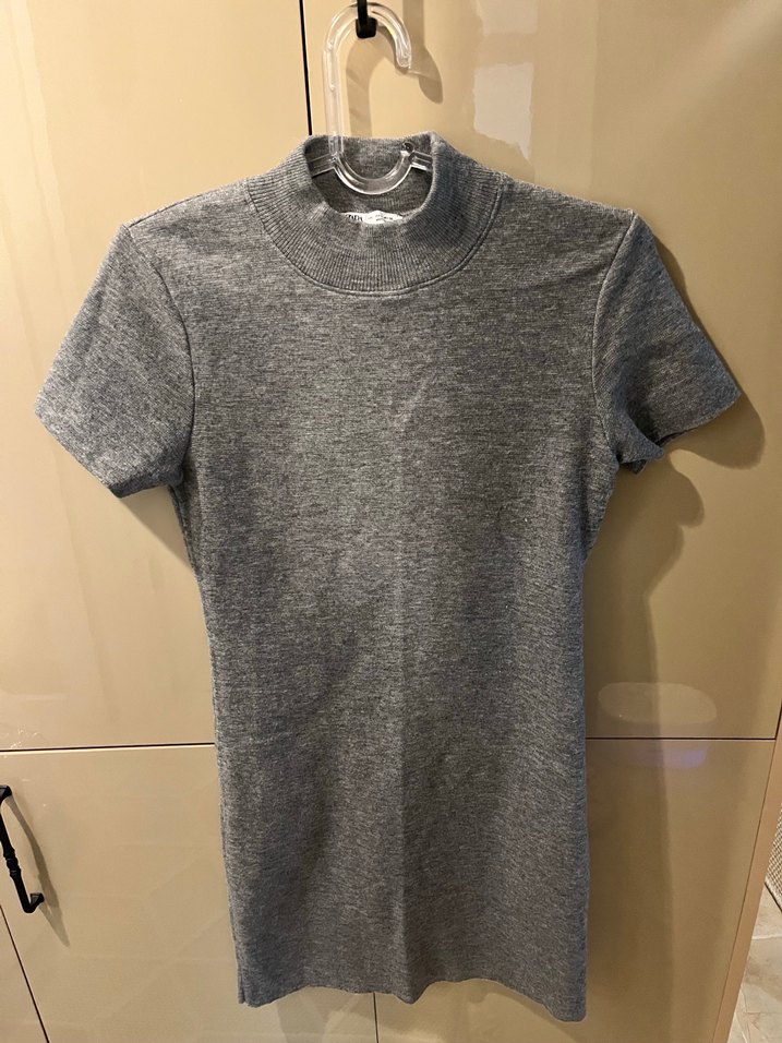 Gri Kısa Kollu Yüksek Yakalı Kadın elbise