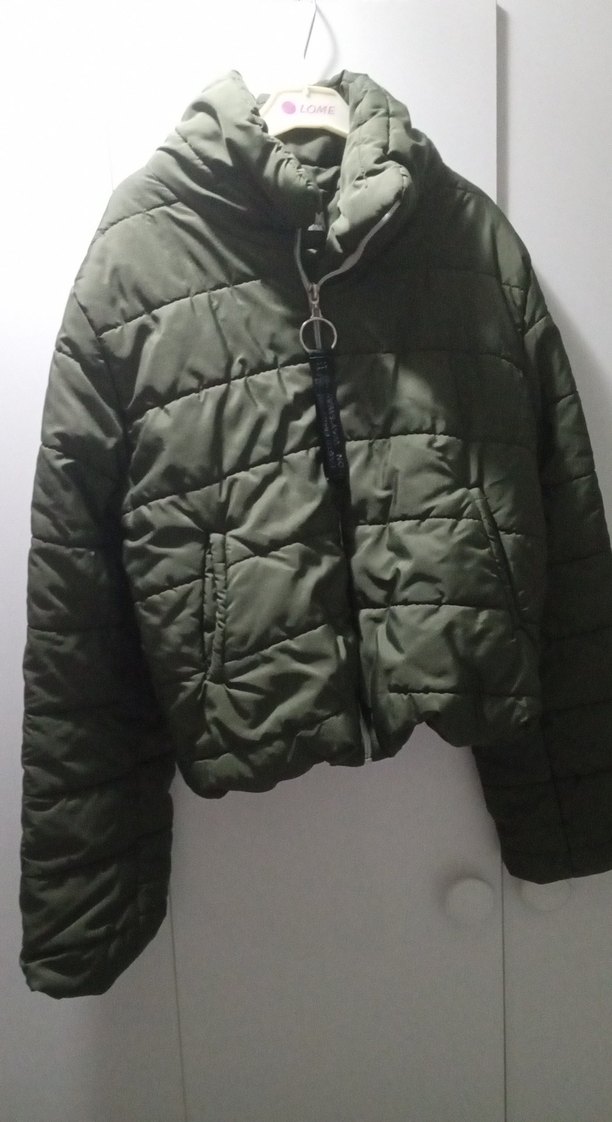 Fermuarlı, yüksek yakalı ve kısa kesim gri kadın kışlık mont. Sıkı kesimi ve yumuşak kumaşıyla rahat ve günlük kullanıma uygun.