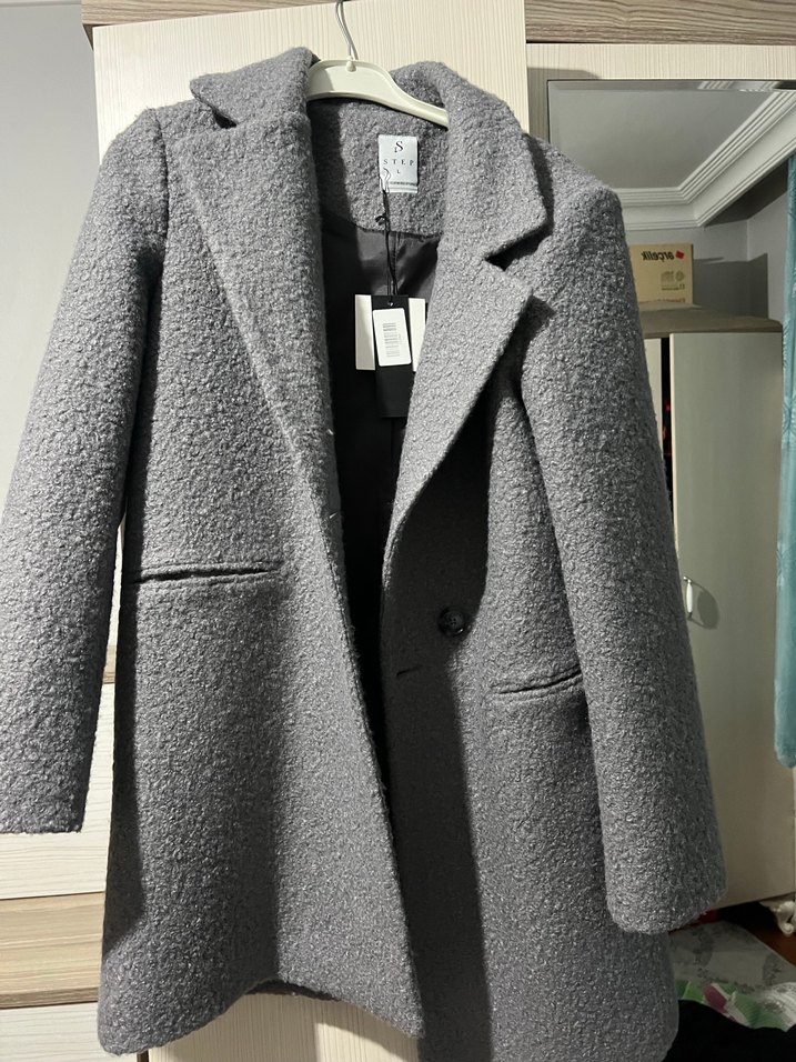 Gri renkli, tek düğmeli kısa kaban. Yumuşak ve dokulu kumaşıyla sıcak tutar, klasik yakalı ve iki cep detaylıdır. ❄️ Ürün yeni etıketlı