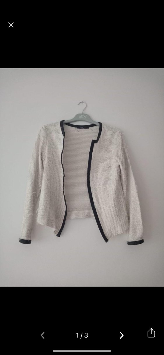 Gri renkli, kısa uzunlukta ve yakası kesik detaylı, uzun kollu örme kadın hırkasıdır. Rahat kalıp ve modern tasarıma sahiptir, yumuşak sentetik kumaştan üretilmiştir. Orjinaldir s-m beden olur