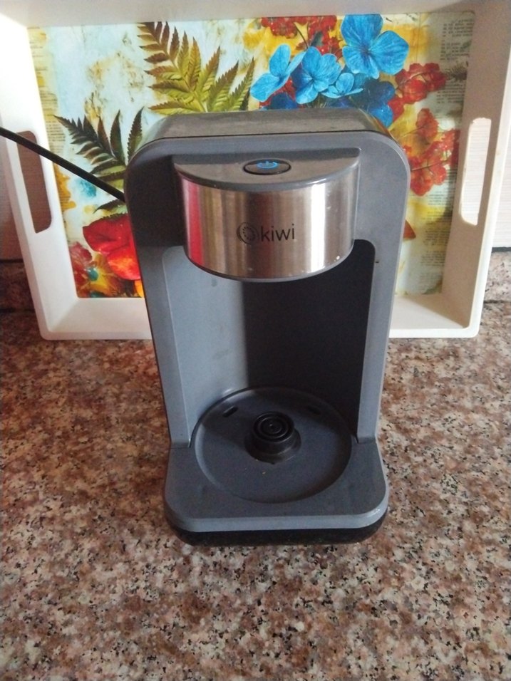 Gri renkte, paslanmaz çelik detaylı, kompakt tasarımlı Kiwi kahve makinesi. Kullanımı kolay arayüze sahiptir. ☕cezvesi yok yandı makinesi çalışır durumda