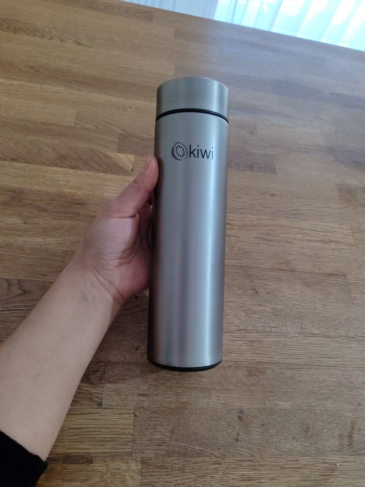 Gri renkte Kiwi markalı termos şişe, içecekleri sıcak veya soğuk tutar. Şık tasarıma ve taşınabilir boyuta sahiptir. derecesi vardir.hiç kullanılmadı.