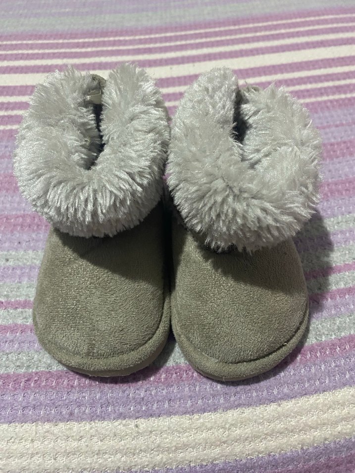 Gri renkte, kız çocukları için yumuşak ve sıcak kumas bot