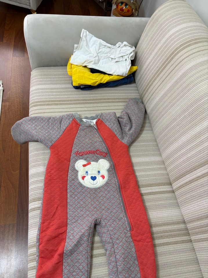 Gri renkte, kırmızı yan panelli ve önünde baskılı ayıcık deseni bulunan yumuşak dokulu bebek tulumu. Rahatlık ve sıcaklık sağlar.