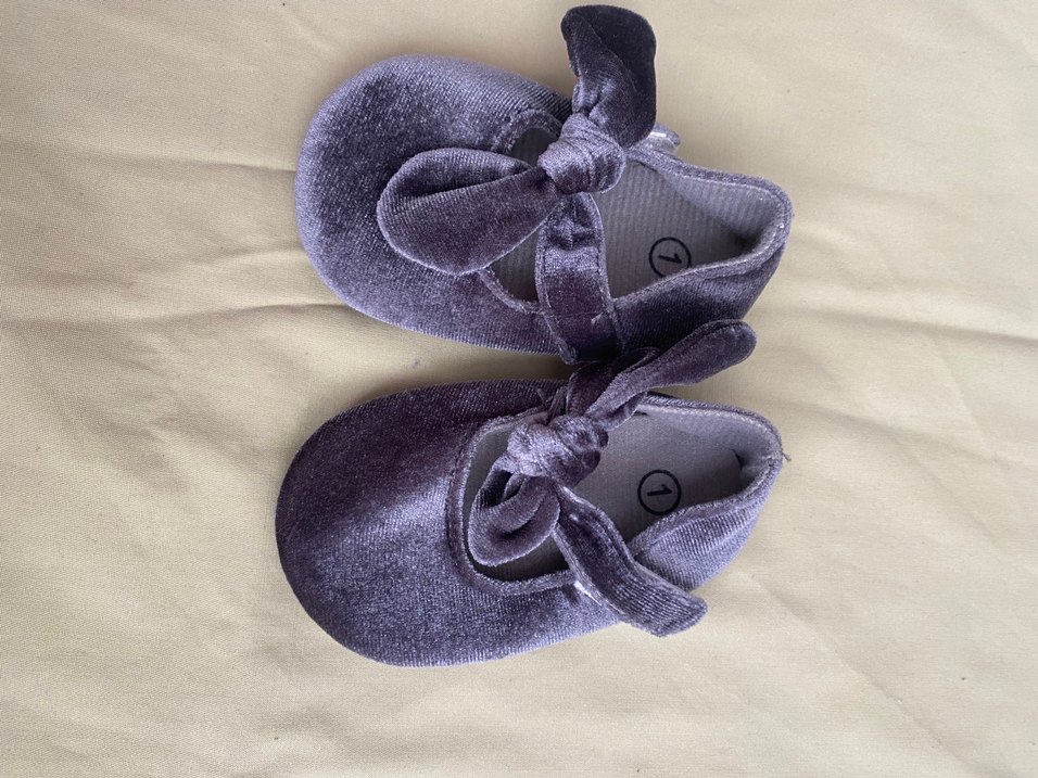Gri kız çocuk babet ayakkabılar, kolay kapanan velcro bant ve yumuşak kauçuk tabana sahiptir. Düz ve desensiz, günlük kullanıma uygundur.