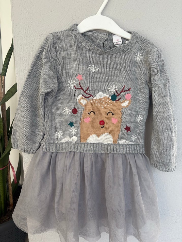 Gri renkte, yuvarlak yaka ve uzun kollu, rahat kesim triko kız çocuk kazağı. Düz ve desensiz, yumuşak örgü kumaştan yapılmıştır.