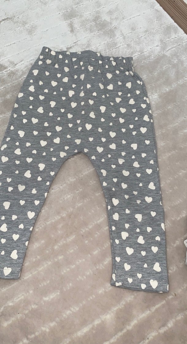 Gri pamuklu kız çocuk taytı, elastik bel ve kalp desenleriyle sokak stili için uygun, dar kesim.