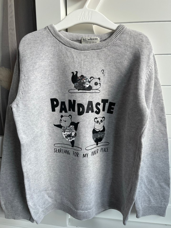 Gri renkte, uzun kollu, bol kesim ve yuvarlak yaka kız çocuk sweatshirtü. Üzerinde Pandaste baskısı bulunur, trende uygun rahat bir modeldir.