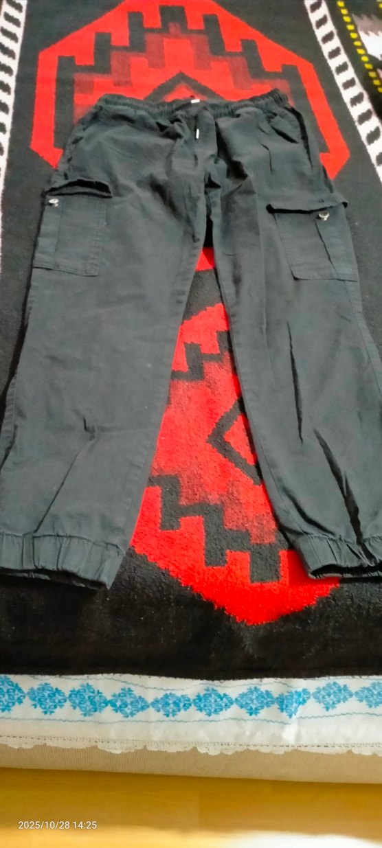 Gri renkte, kemerli ve cep detaylı erkek çocuk salaş pantolon, yumuşak sentetik kumaştan, sokak stiline uygun.