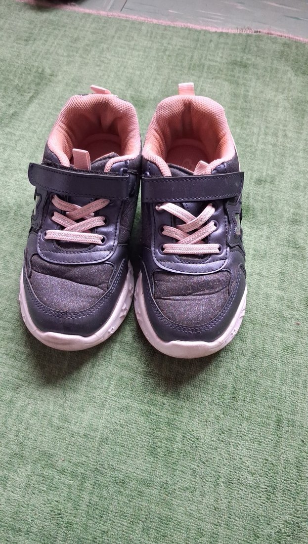 Lacivert renkli kız çocuk spor ayakkabısı, cırtlı bant ve kauçuk tabanlı, sade ve deseniz sokak tarzına uygun tasarım. Işıkları çalışır durumda.